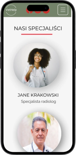 - Nasz zespół specjalistów: Trzecia sekcja to wizytówki specjalistów pracujących w klinice. Dla każdego lekarza weterynarii przygotowano zdjęcie, krótki opis kwalifikacji oraz specjalności. Dzięki temu pacjenci mogą łatwiej wybrać odpowiedniego specjalistę dla swojego zwierzęcia.